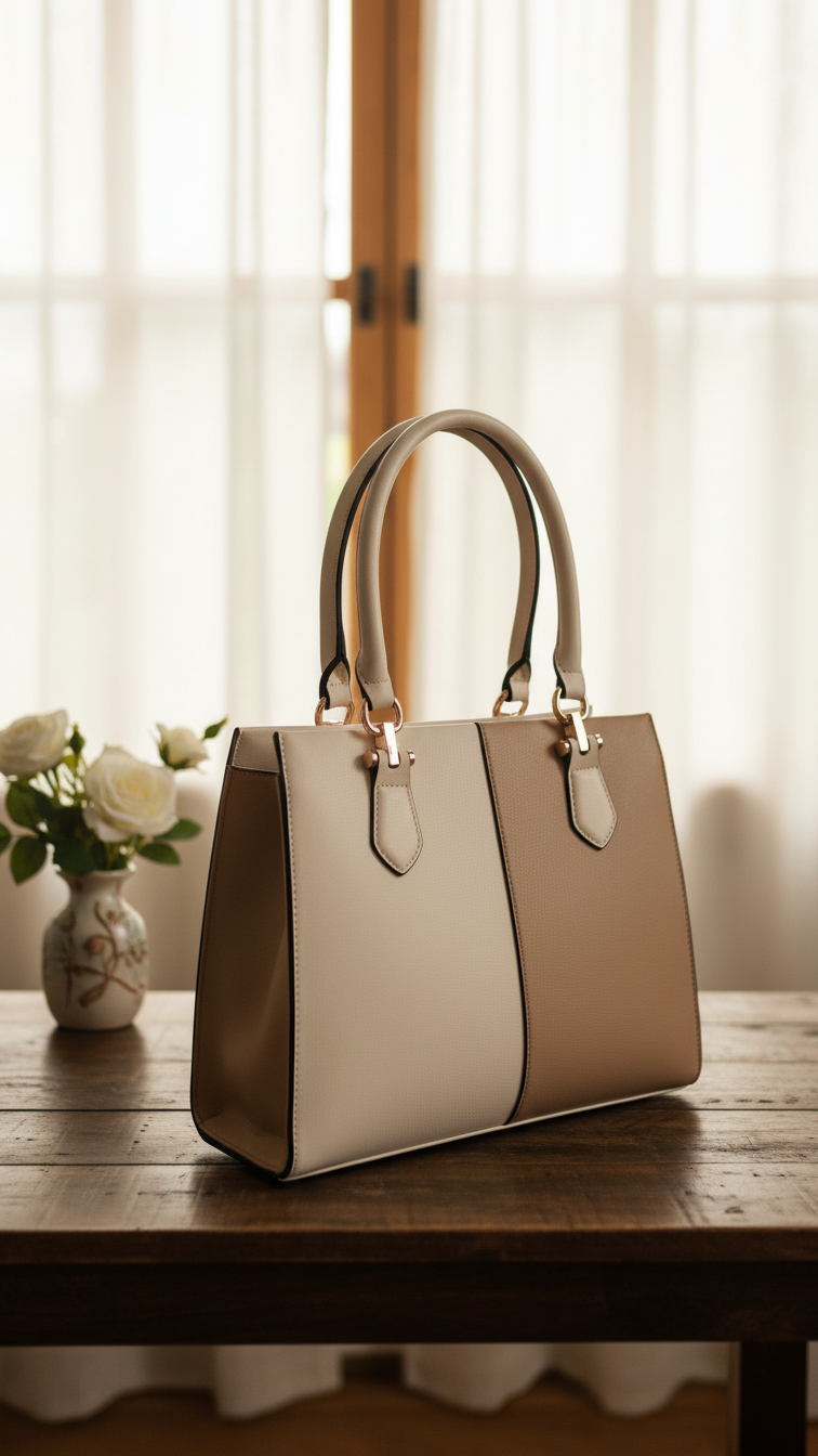 Bolsa bege com alça estruturada, simples e elegante. Excelente opção para trabalho e para eventos ela é extremamente versátil.